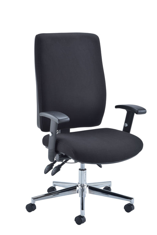 View full detailsA fully-adjustable high back operator chair with a chrome base and adjustable arms. Featuring a thick foam seat and an advanced mechanism for all-...