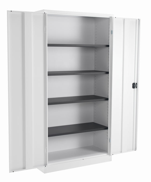 (H)1790mm (W) (D)420mmWith a robust, sturdy construction, our steel cupboard range is a durable alternative to wooden storage. Lockable, with a 50kg weight tolerance and available in multiple height and colour options. This 2 door 1000mm high cupboard can accommodate shelves and hanging files (sold separately)