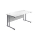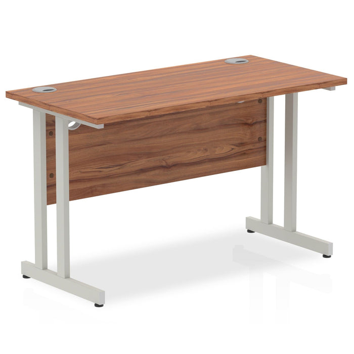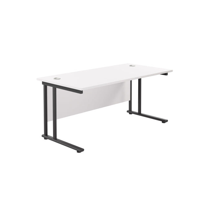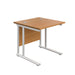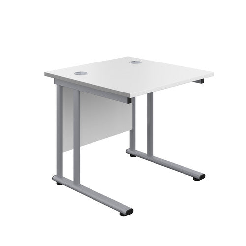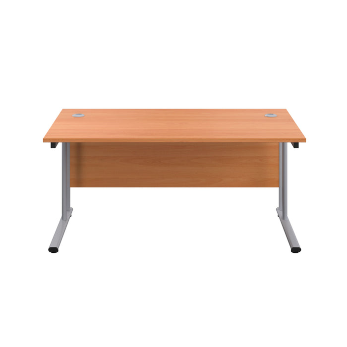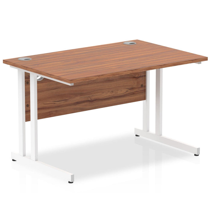 A cost-effective rectangular office desk with white or silver cantilever legs and a range of wooden desktop finishes